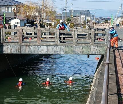 犬がリード引っ張って飼い主ごとクリークの中に・・・