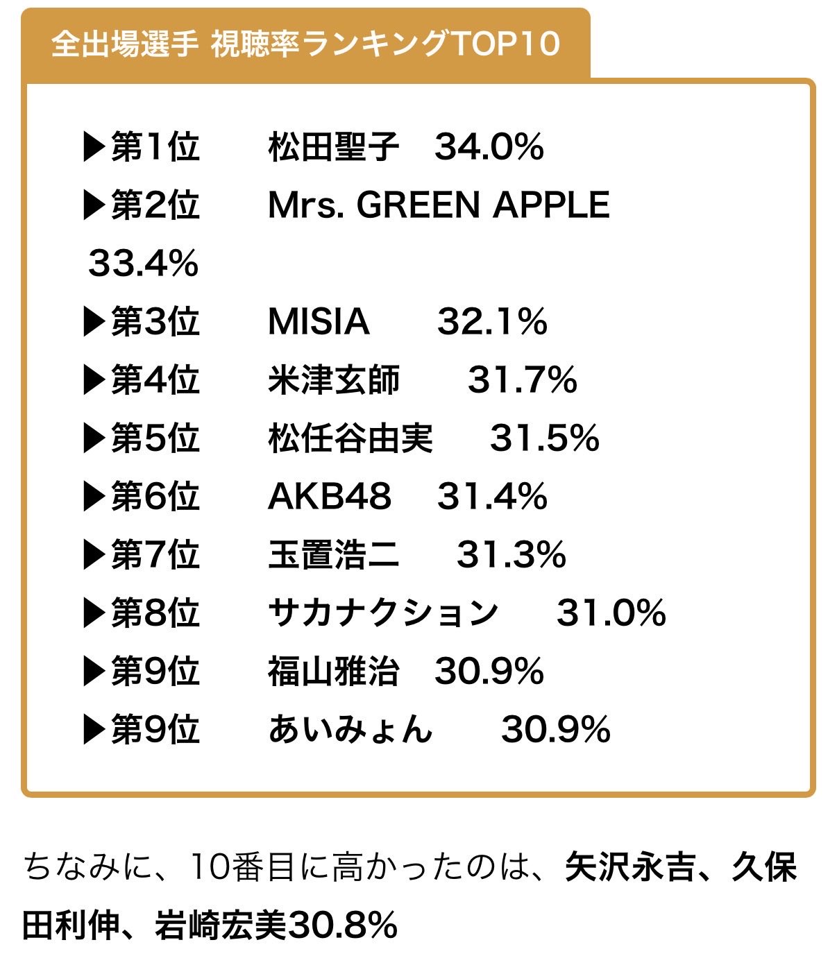 ▶第9位  福山雅治・30.9%