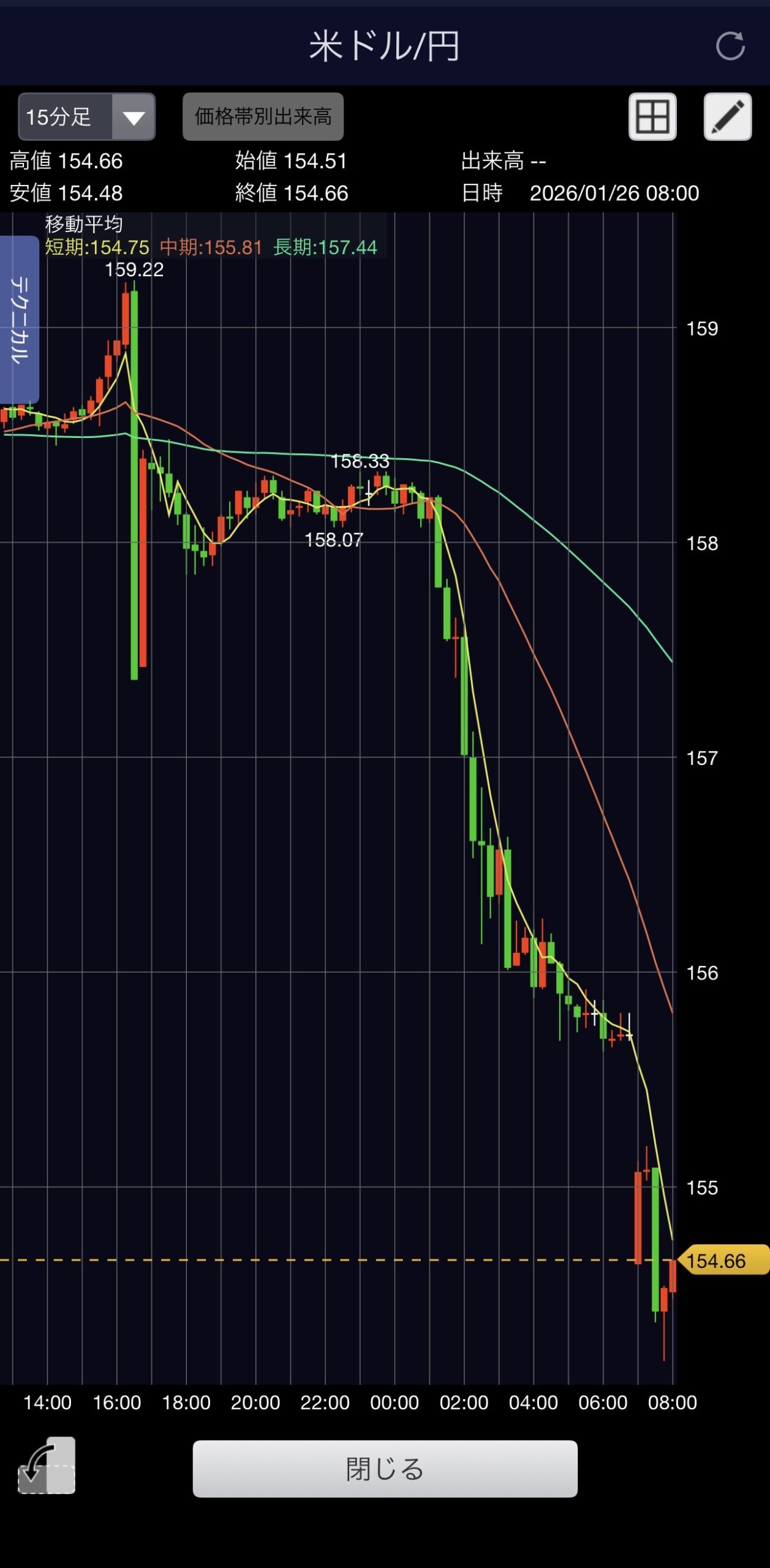 先週の159円に戻す君生きてるかのぅ