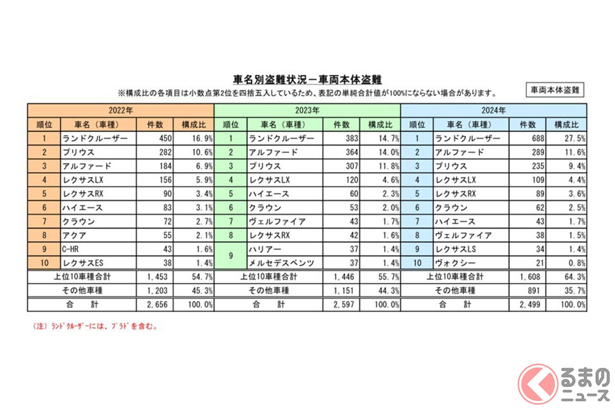 ランクル、ハイエース、キャリイ、エブリイを盗む奴は分かってる感が強目が肥えてる