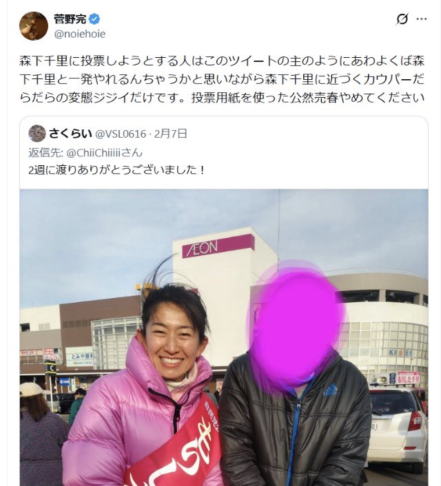 てかお前の対抗馬は立憲と繋がりある奴に売春婦扱いされてたけどそっちのが問題だろ