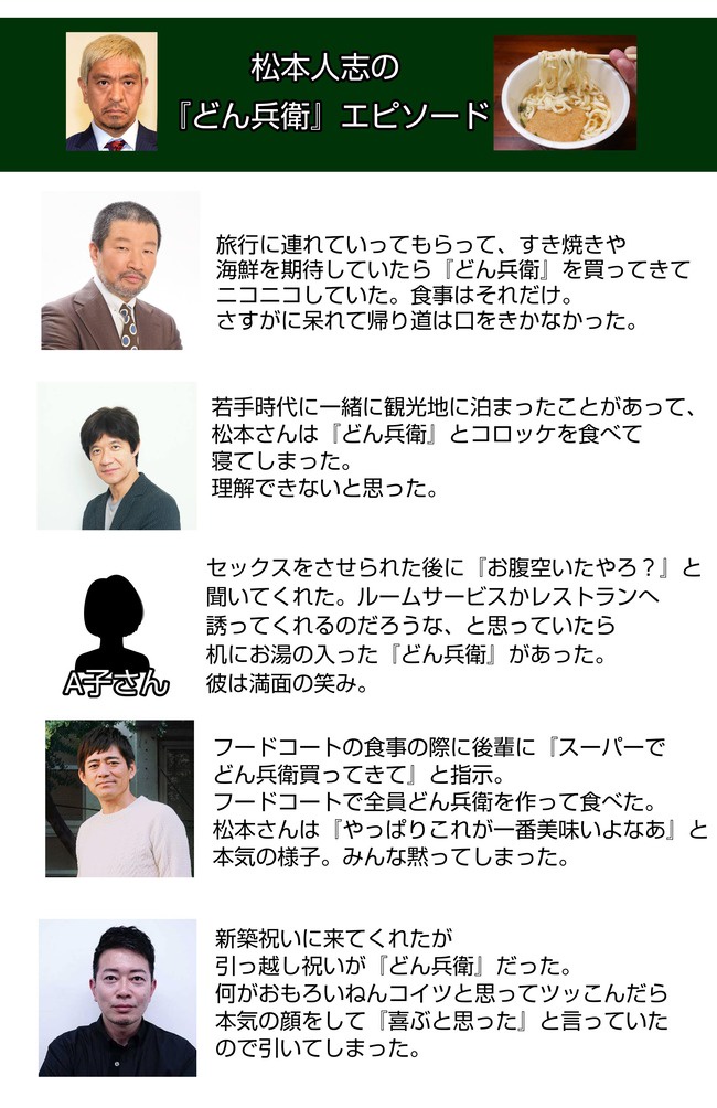 なお先輩でケチの松本人志は後輩にどん兵衛をたべさせていた