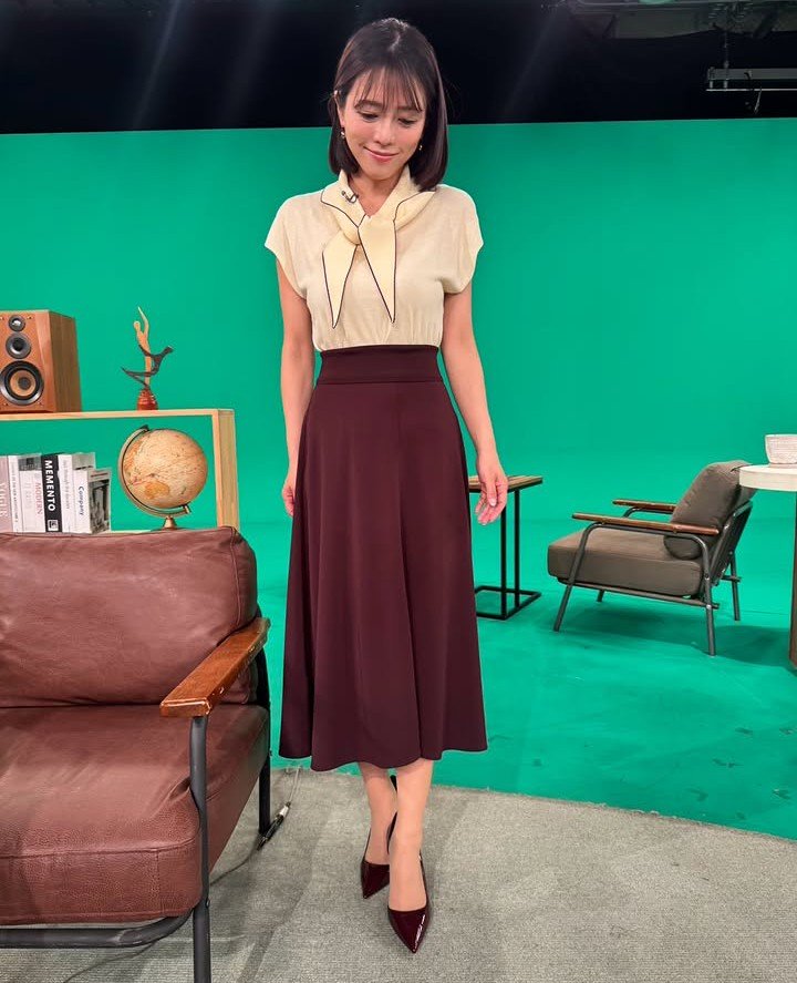 レモンイエローのトップスにロングスカートを合わせたコーデ。番組を見たネットは「防災のテレビに釈由美子が出ていてそっちが気になって内容が入ってこない」「久々に釈由美子を見た」と、抜群スタイルと美ぼうにくぎ付け。