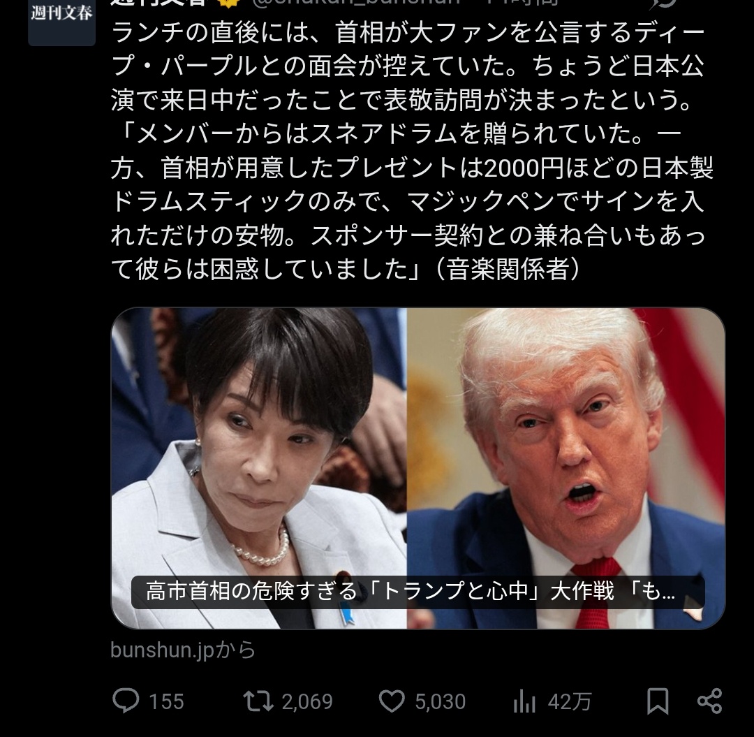 サインがあれば1000万円とかの価値があるんだろ高市周辺では