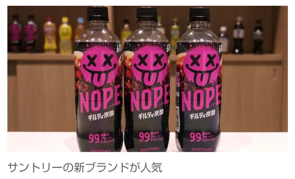 約14年ぶりに誕生したサントリービバレッジ&フード(以下、サントリー)の新ブランド「ギルティ炭酸 NOPE(ノープ)」が、大ヒットしている。3月24日の発売から、1週間で出荷本数2000万本を突破した。