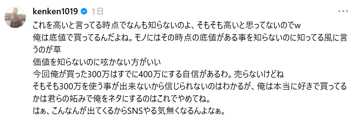 こんなん買うの普通ですよみたいな事言い出すから