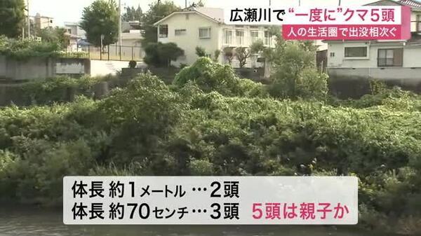 17日夜、仙台市青葉区の広瀬川の河川敷で、クマ5頭が一度に目撃されました。現場周辺には住宅街が広がっていて、警察が注意を呼びかけています。
