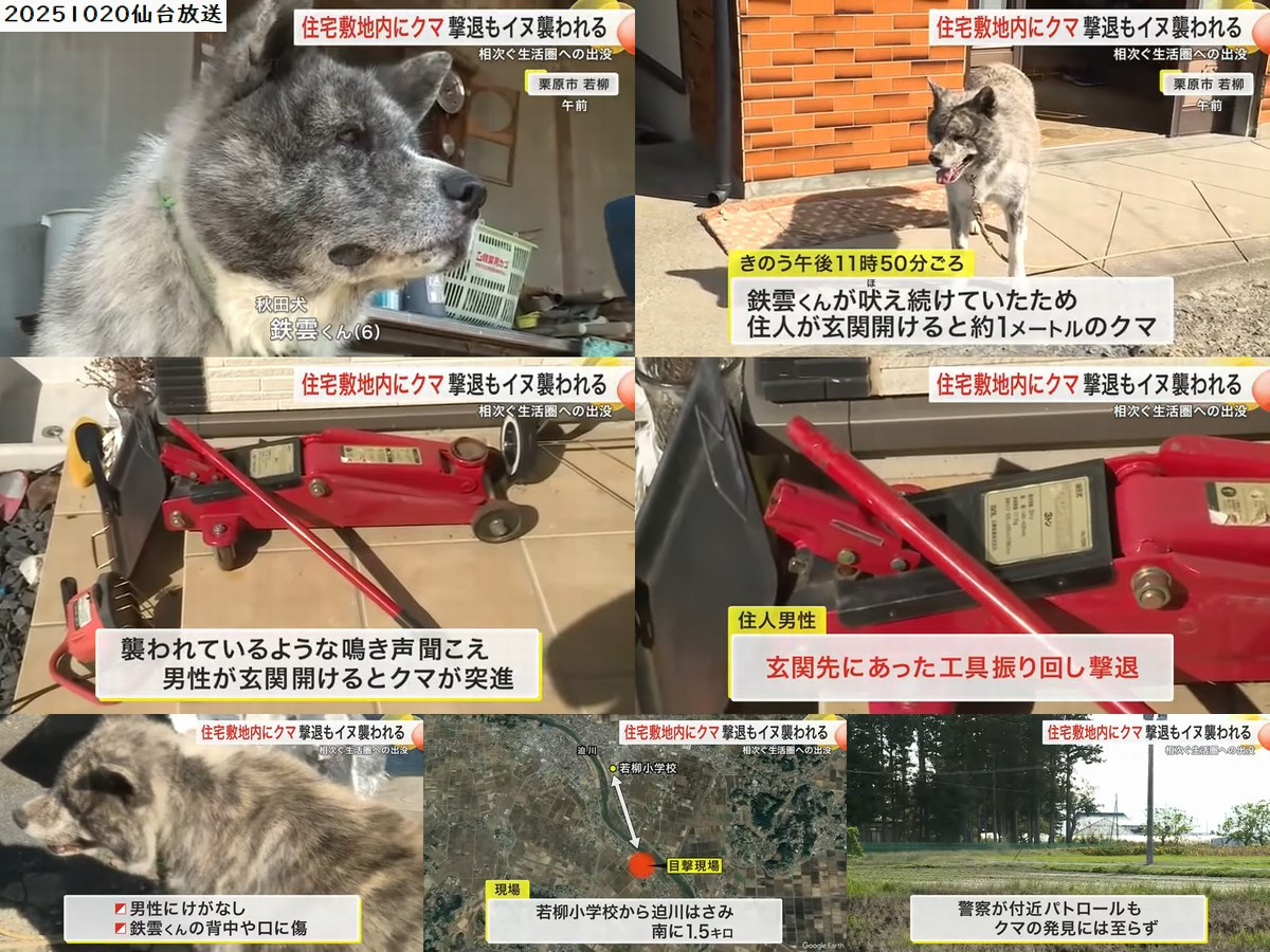 今月19日に隣の宮城県栗原市で飼い犬がクマに襲われる事件も発生してる