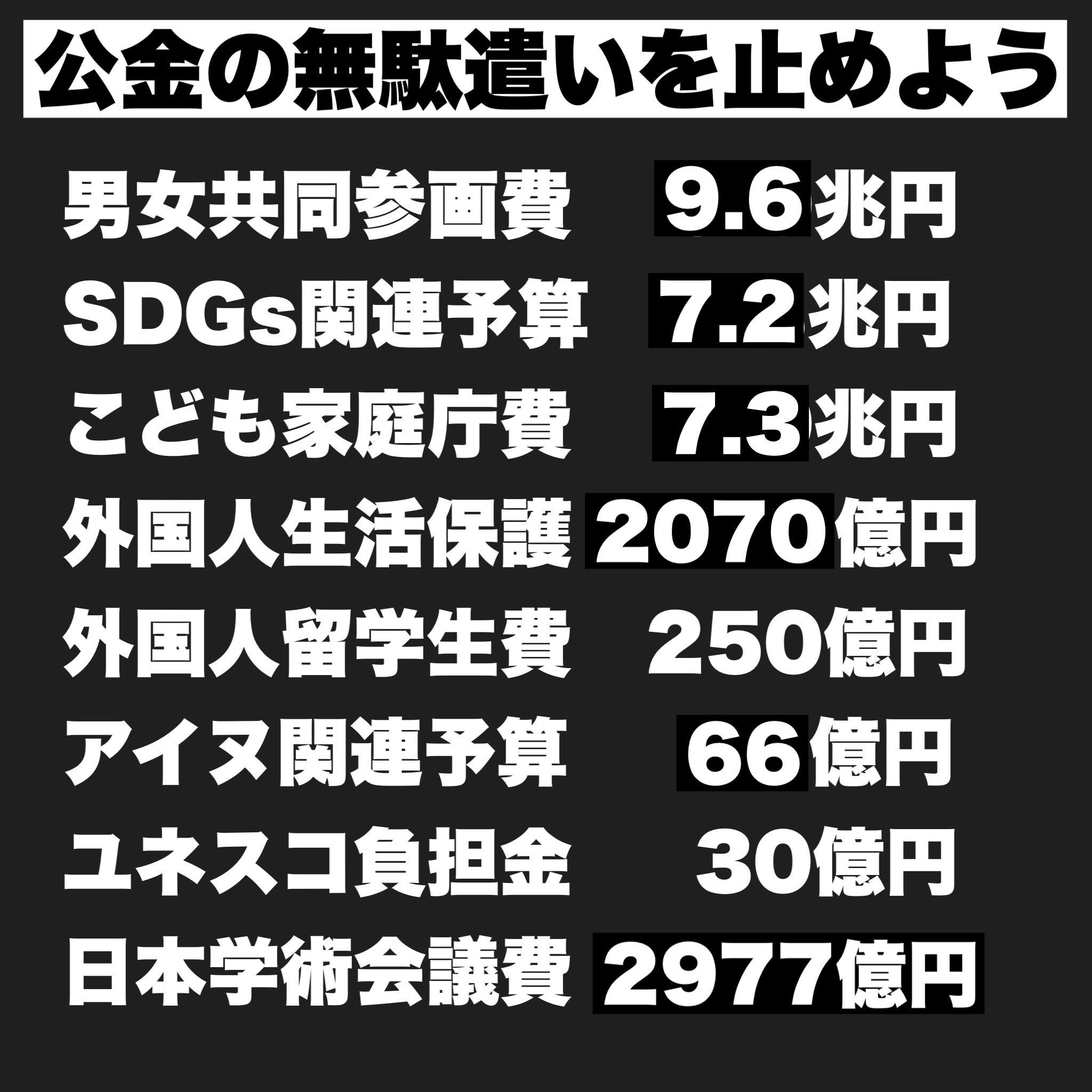 男女共同参画7兆円を廃止できなきゃウソだな