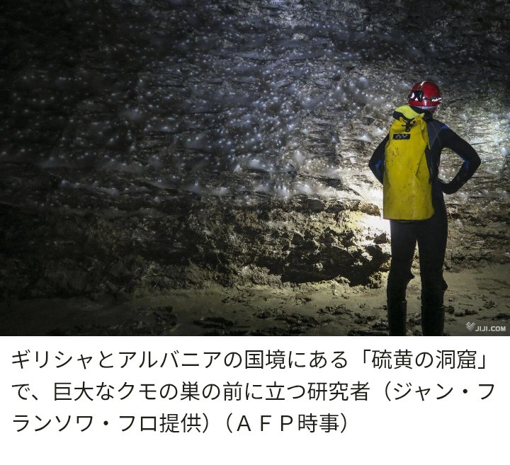 【アテネAFP時事】ギリシャとアルバニアの国境にある洞窟で、テニスコート半面に匹敵する巨大なクモの巣が発見された。アルバニアやドイツなどの国際研究チームが科学誌「サブテレニアン・バイオロジー」に発表した。約11万1000匹のクモが生息していたという。