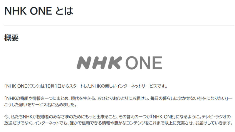 NHKでは、ニュースや防災情報などをWebサイトやアプリを通じて配信しており、9月までは無料で閲覧が可能だった。しかし、10月に「NHK ONE」としてサービスを統合/リニューアル後は、利用に受信契約が必須化された。それに伴い、ニュースの閲覧にもアカウントの作成や契約情報の紐付けが求められるようになったため、登録やログインをしていないユーザーには、閲覧時にその旨の通知が画面上に表示される仕様となっている。