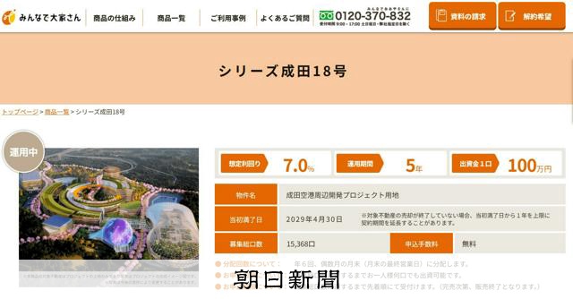 土地投資「みんなで大家さん成田」分配金支払い遅れ 1千億円超集金:朝日新聞