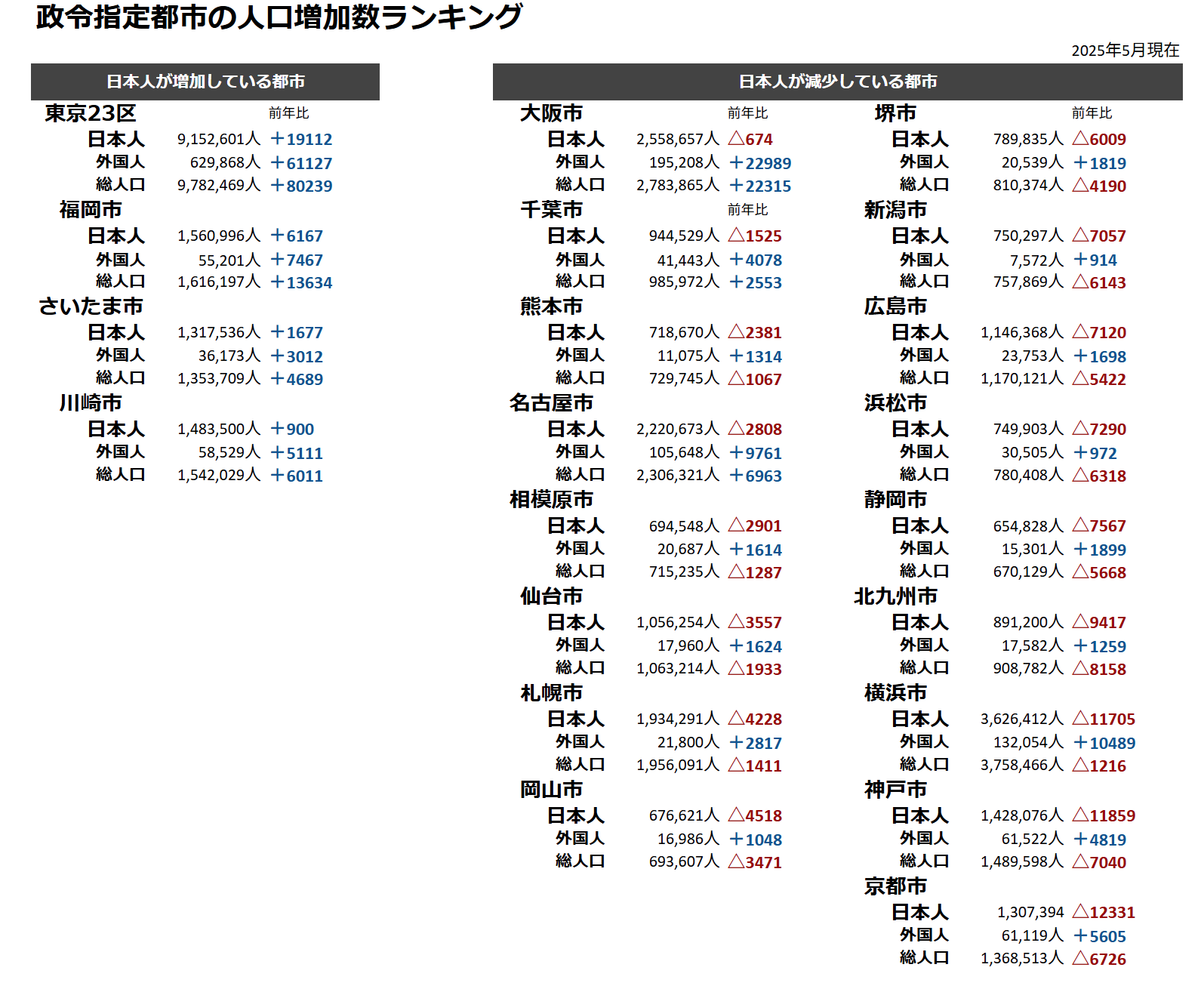 都市別外国人増加数