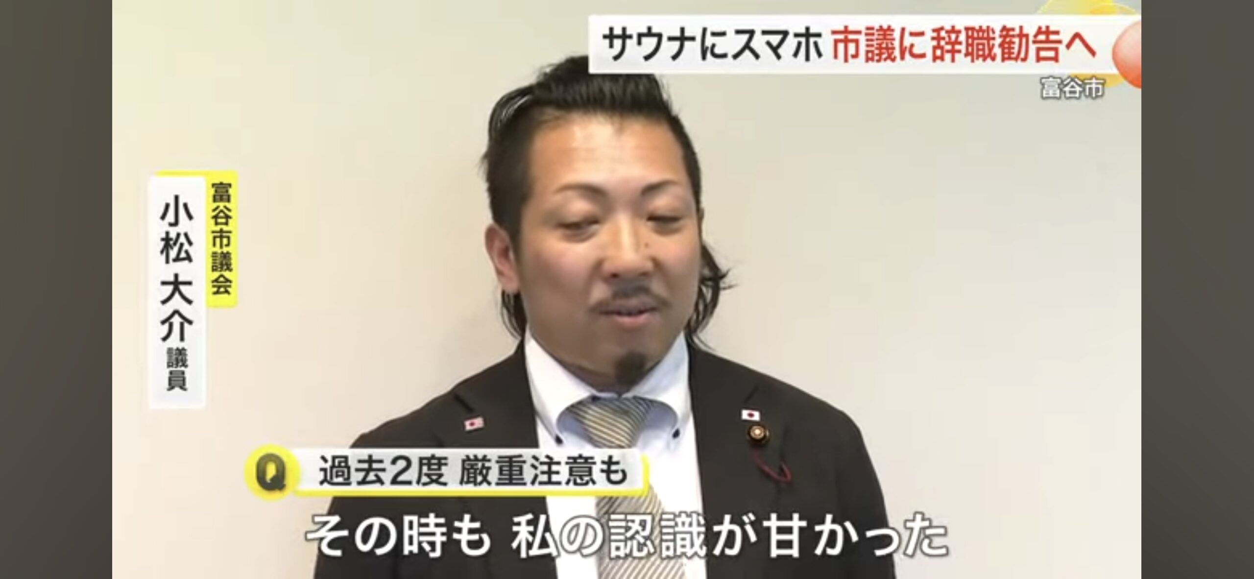 富谷市議会によりますと、小松議員は、11月、市内の入浴施設のサウナにスマートフォンを持ち込み、ほかの利用者から市に対し、苦情が入ったということです。