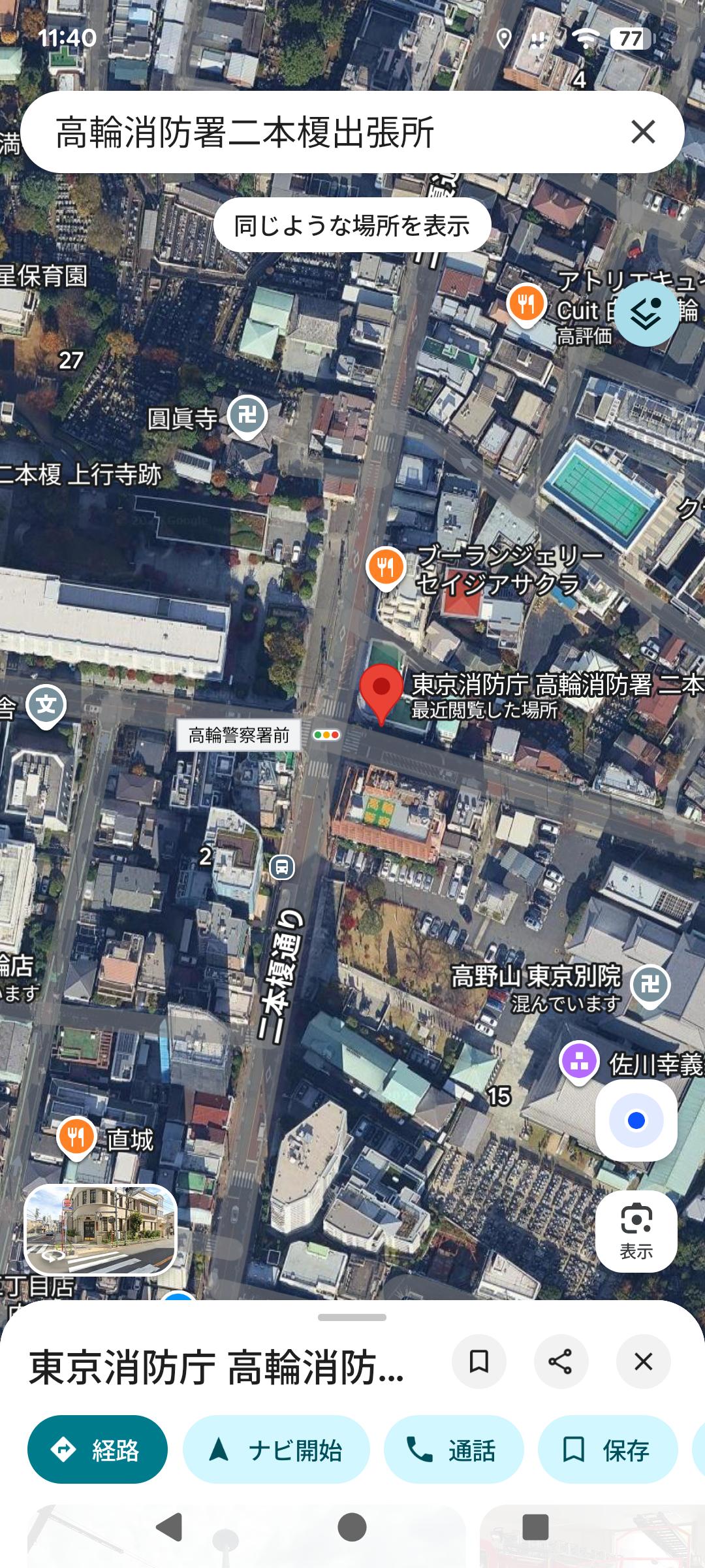 隣には、歴史的建造物の高輪消防署二本榎出張所があり、消火を急いでいます
