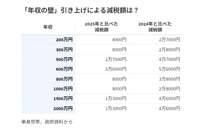 18日の自民と国民民主の合意によって、年収の壁は現行の160万円から178万円に引き上げられることになった。最大の基礎控除を受けられる対象は年収200万円以下から年収665万円以下に拡大。年収665万円を超える所得層については物価に連動した分だけ控除額が上がるものの、665万円以下の人に比べると控除額の引き上げ幅は小さいことなどから、交流サイト(SNS)などで「失望した」との意見が相次いでいた。